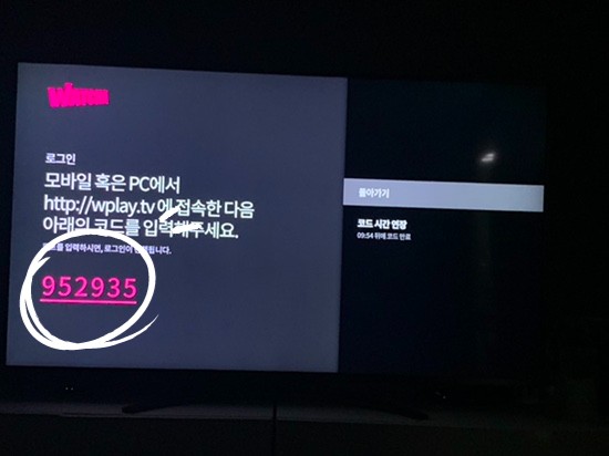 8. wplay.tv에 접속해서 코드를 입력해준다.