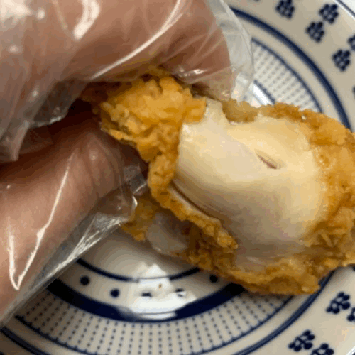 튀김옷을 만졌을 때 눅눅한 느낌은 아니고 단단한 느낌의 튀김옷 같이 느껴졌다.