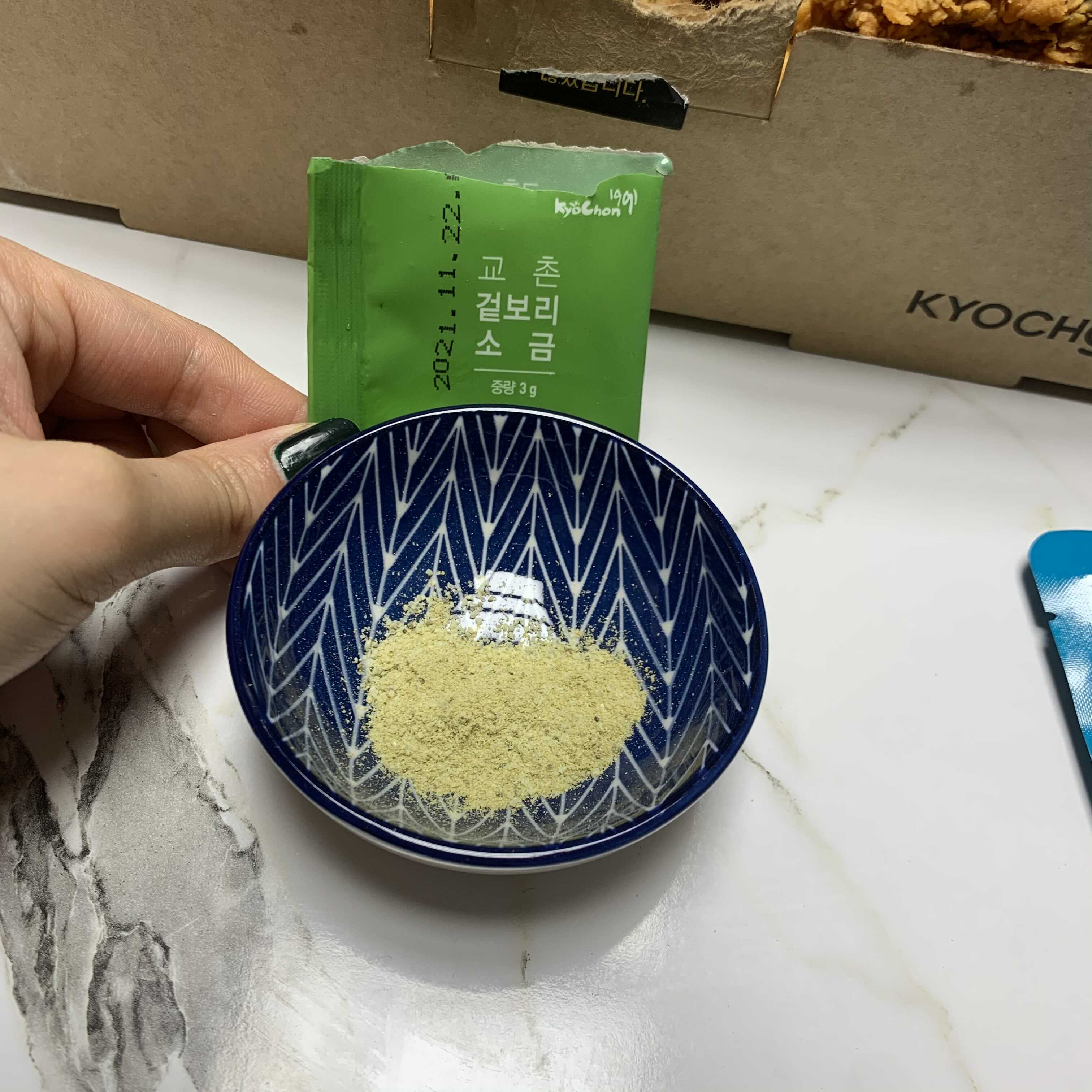 후라이드에 찍어먹으라고 들어 있는 소금 양념!