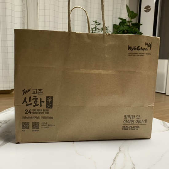 교촌 치킨의 시그니처 종이 포장과 함께 스티커로 꼼꼼하게 포장이 되어 있었다.