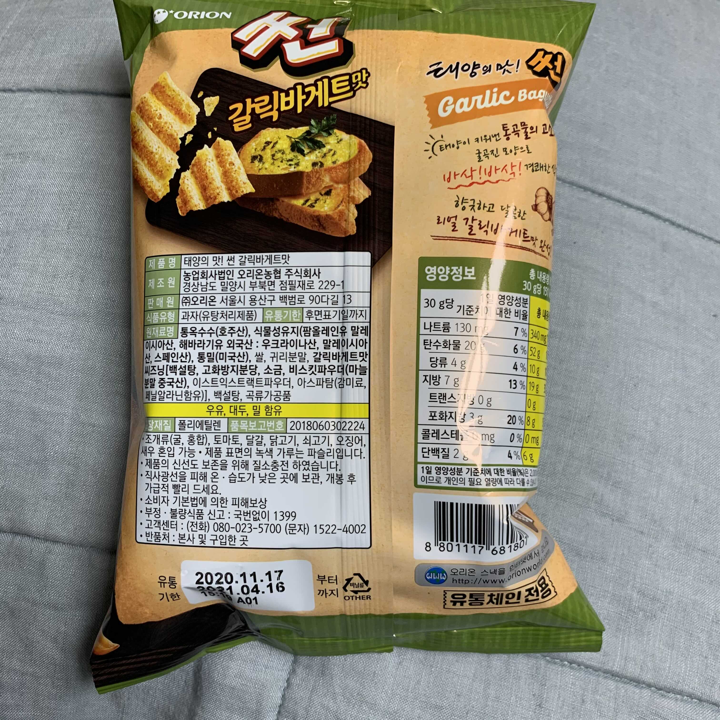 오리온 썬 갈릭바게트 맛은