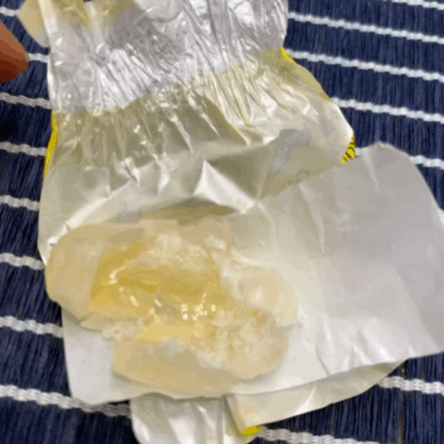 사탕 자체가 엄청 딱딱하고 견고한 제품은 아니라서 빗으로 퉁퉁 두번 치니깐 부셔졌고, 안에 필링을 볼 수 있었다.