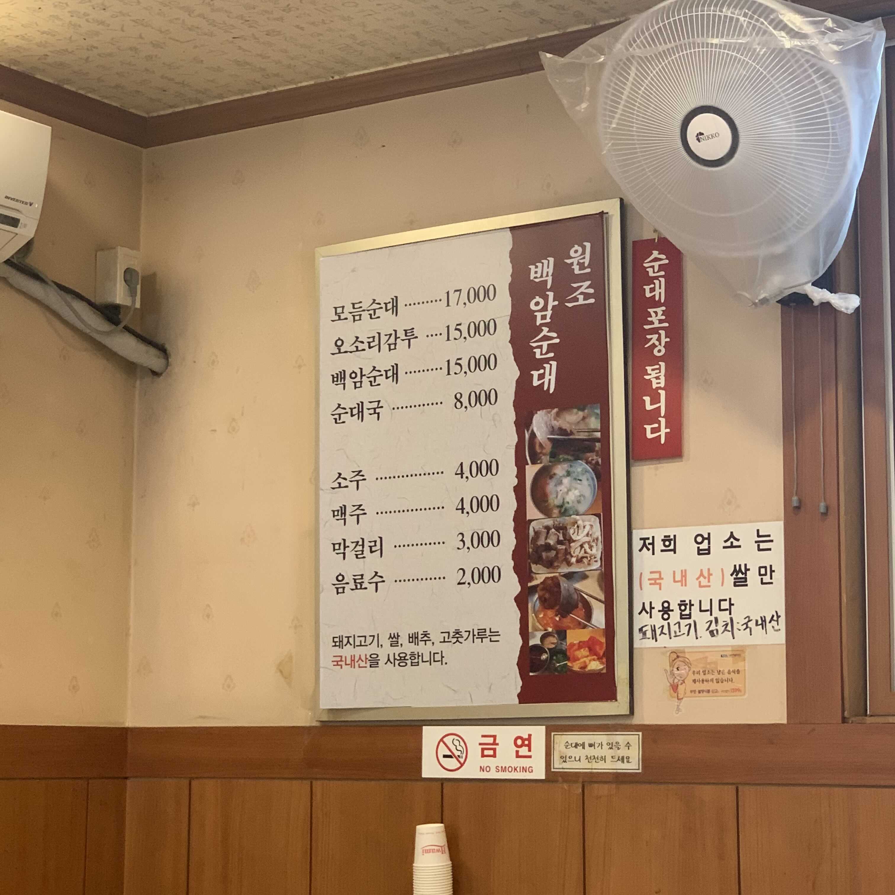 후기를 워낙 많이 봤던 탓에 양이 많아 2명이 가면 백암순대와 순대국 각 1개를 주문하면 된다고 했기에 망설임 없이 주문을 했다. 백암순대는 대신 국물은 나와도 밥이 나오지 않기 때문에 밥을 따로 주문해야한다.