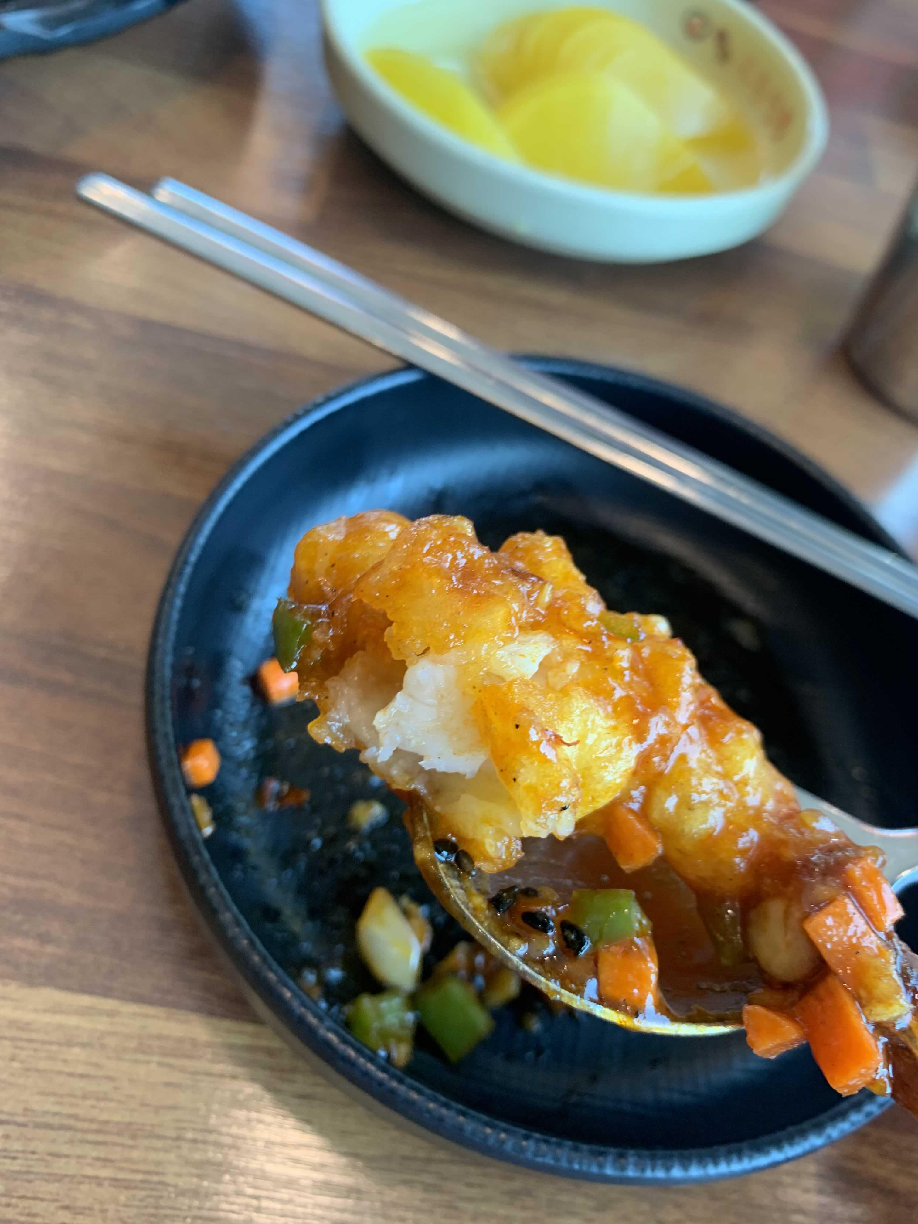 튀김도 많이 두껍지 않고 양념에 야채가 잘 다져서 들어가서 아이들도 부담없이 맵지 않게 먹을 수 있을 것 같았다.