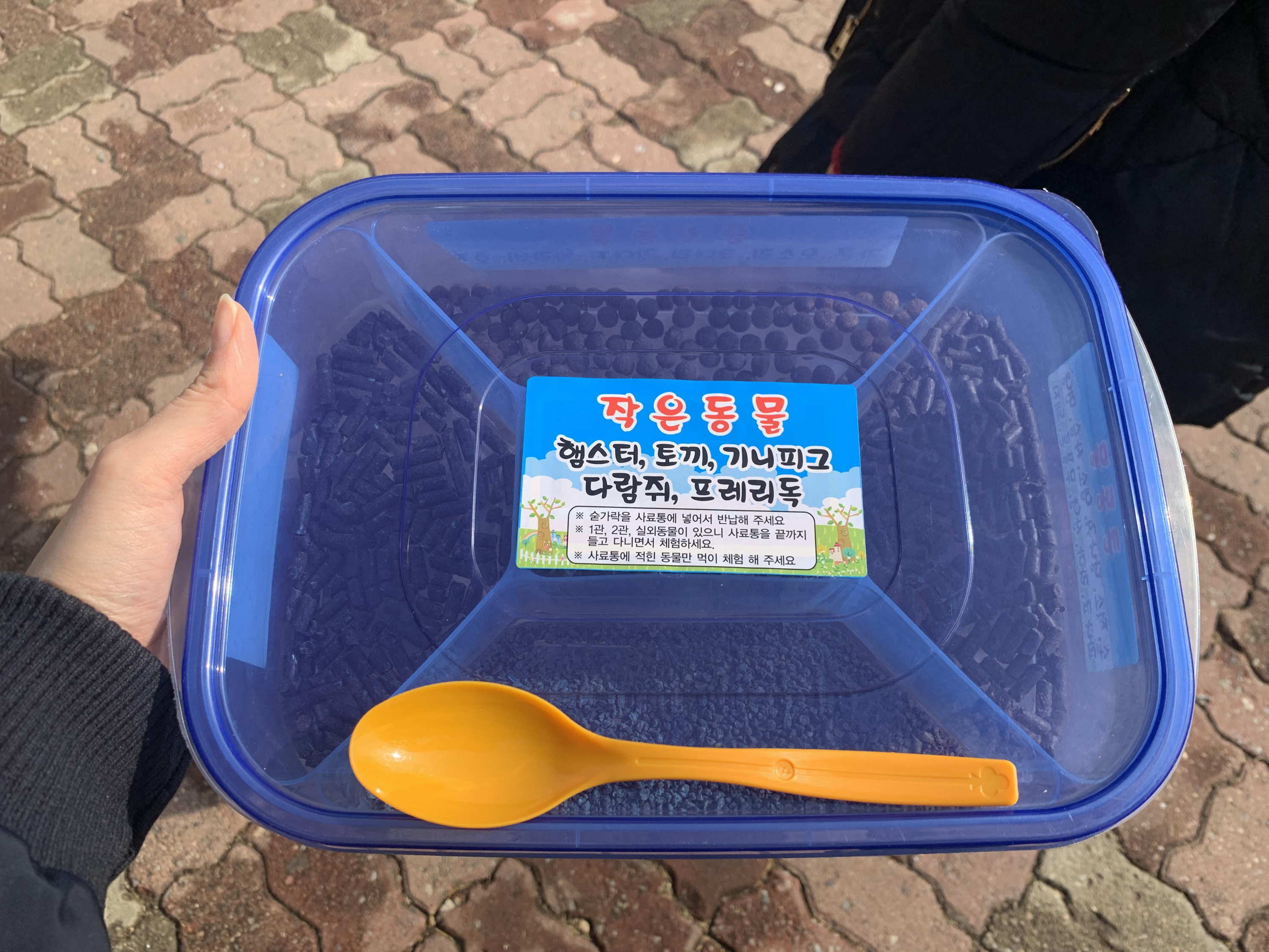 다른 곳과는 다르게 먹이를 판매하고 있지 않고 2인당 1개의 먹이를 준다.