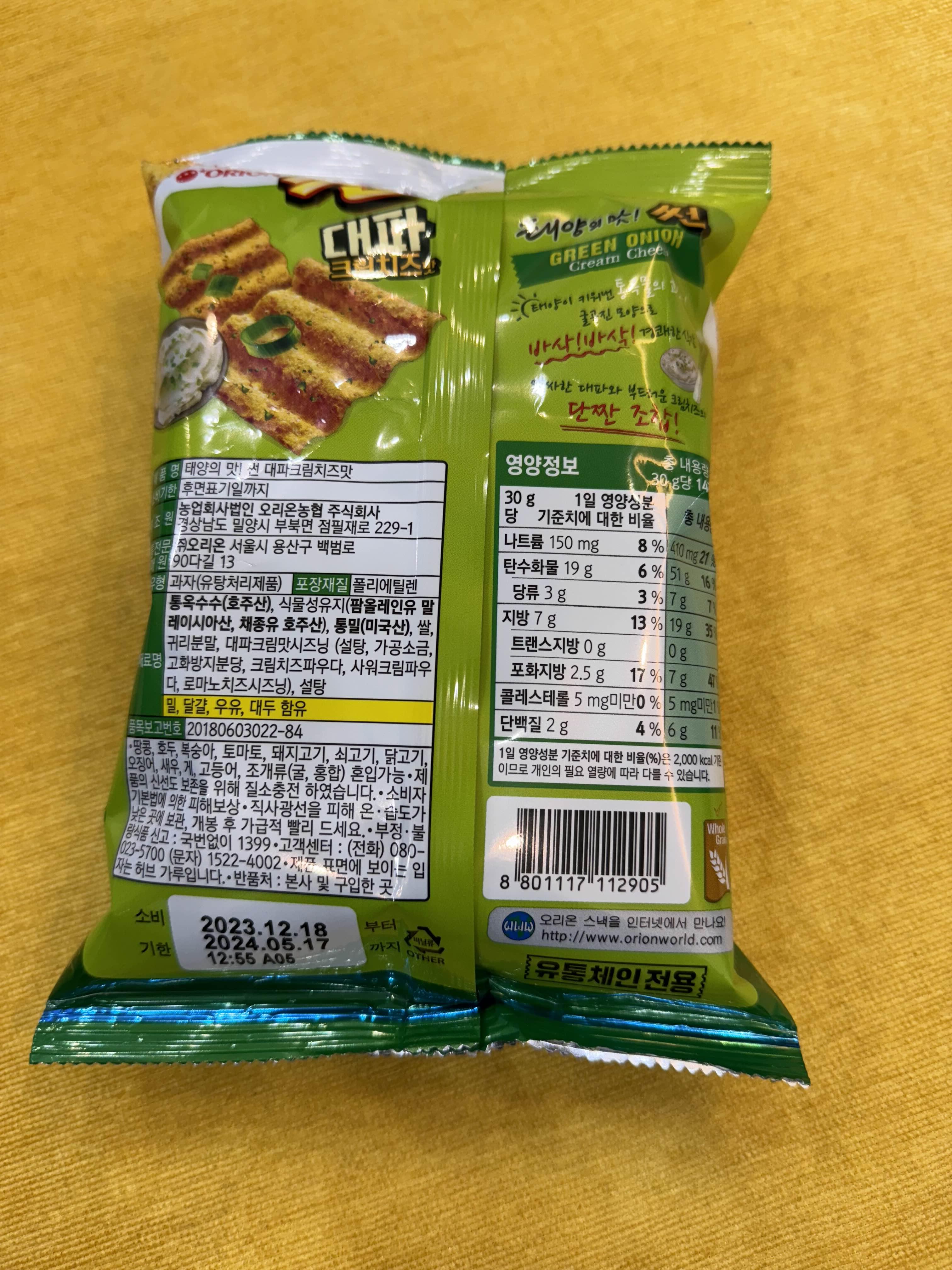 오늘의 편의점 신상 과자 태양의맛 썬! 대파크림치즈맛 성공적이다.🍪