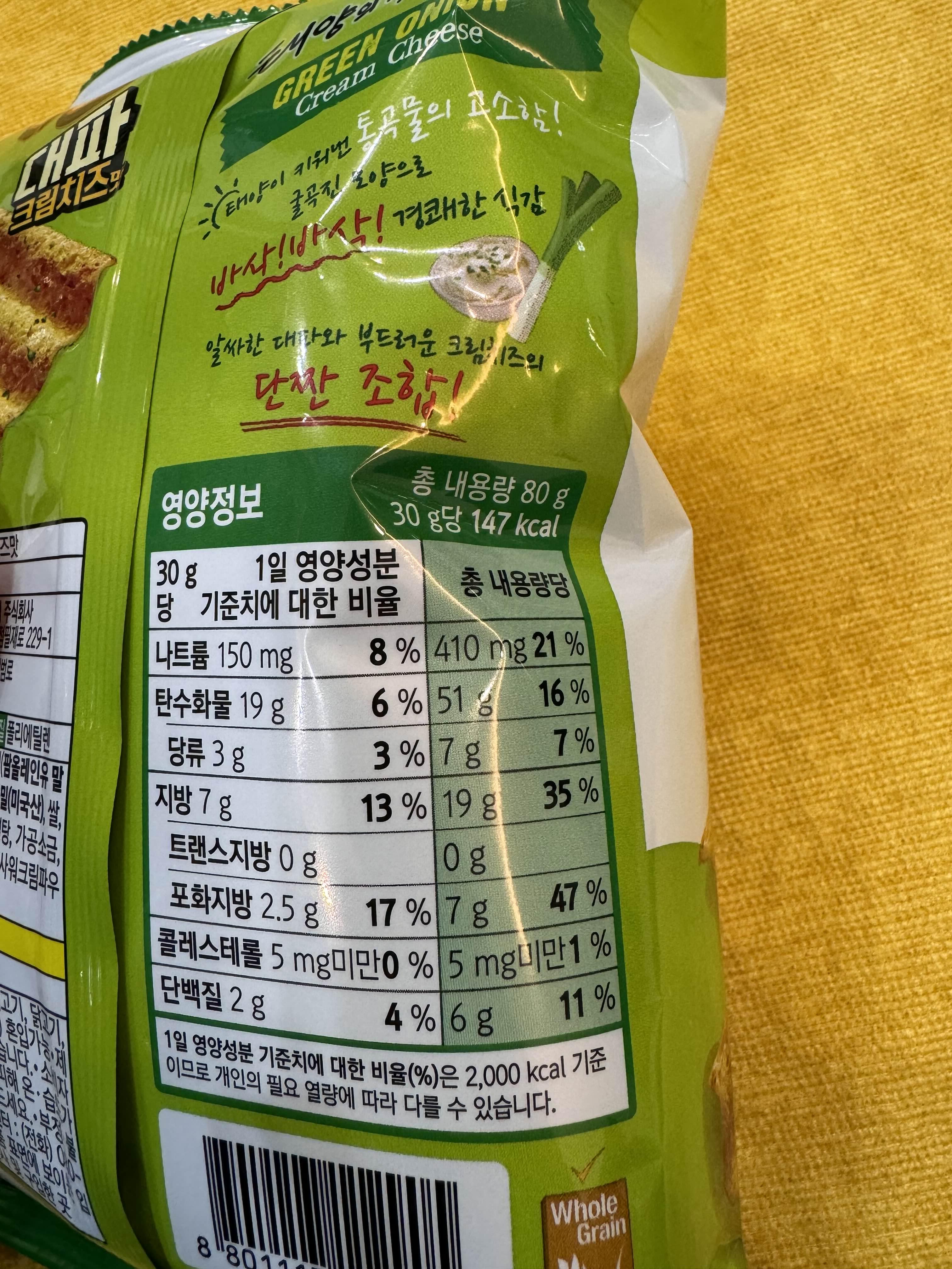 냄새는 대파 크림 치즈향 같기는 하지만, 대파크림치즈향이 이거다!! 라고 딱 정의가 없어가지고 그냥 갈릭맛과 비슷한 향이라는 생각을 하게된다.(갈릭 내 최애)