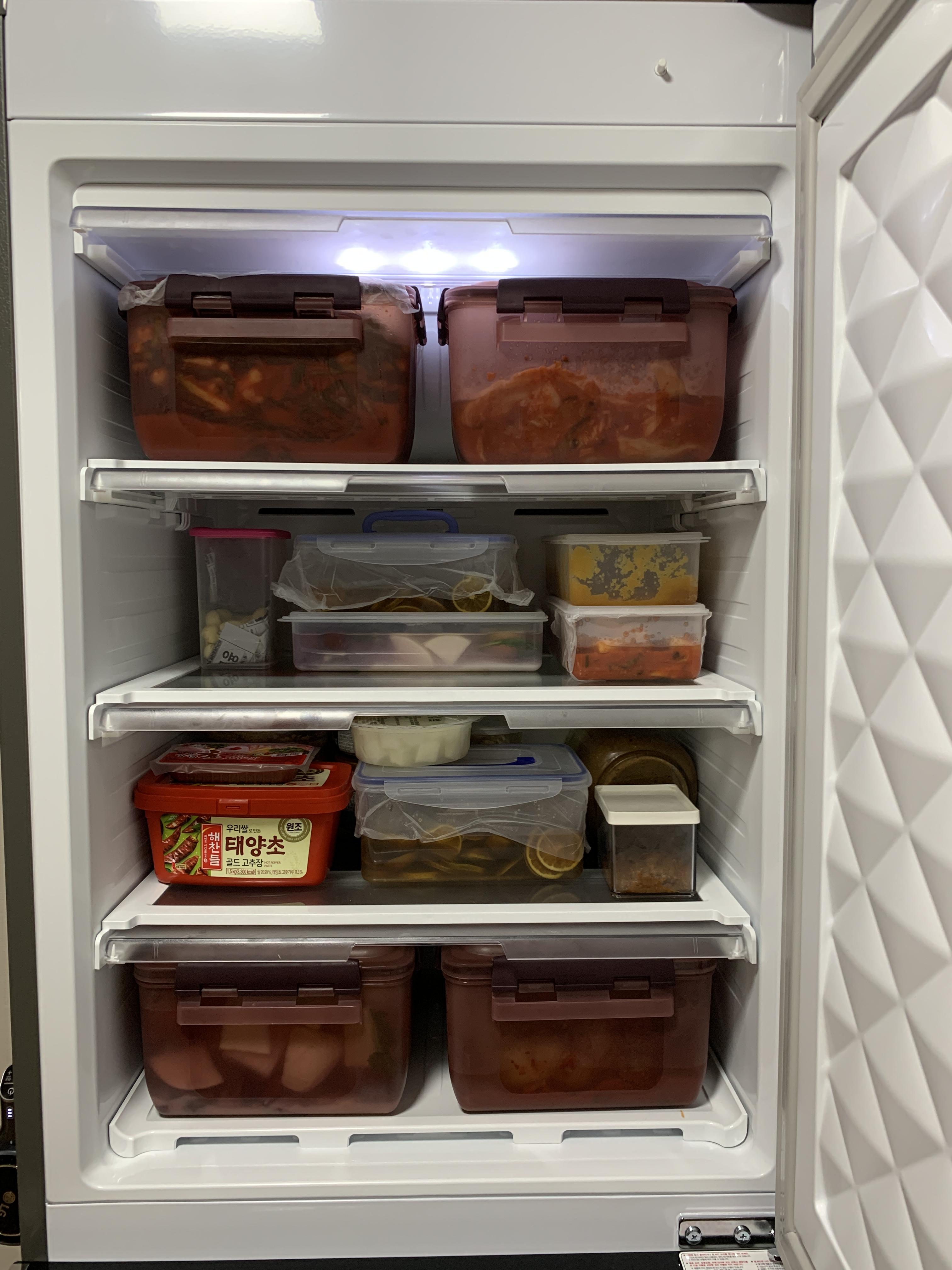 맞아요. 공간은 충분해요. 근데 제가 생각하던 김치 냉장고는 김치 외에 장기 보관 하고 싶은 청귤청 다진 마늘 고추장 된장 쌈장들을 함께 넣어두는 공간이라고 생각했기에 부족하다고 하는거에요.